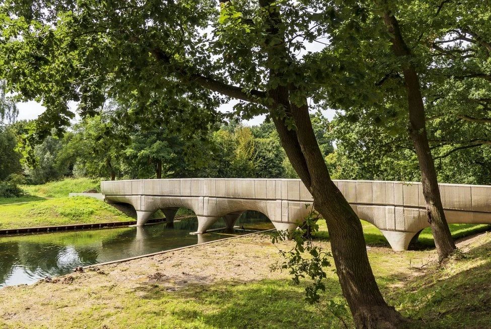 目前荷蘭奈梅根市擁有世界上最長的混凝土3D打印自行車橋,全長29米。歸功于埃因霍溫理工大學(xué)的研究和3D混凝土打印技術(shù)的進(jìn)一步發(fā)展,使這個(gè)項(xiàng)目很獨(dú)特,因?yàn)樵撟孕熊嚇虮辉O(shè)計(jì)為完全不用模型建造,以圓形和波浪形為特征,位于DeGeologenstrook公園。