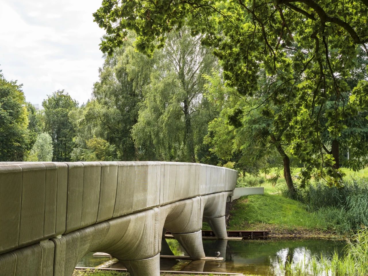 該橋在Saint Gobain Weber Beamix的混凝土打印工廠逐層打印而成,由BAM施工組完成。它不僅是世界上最長的,也是最大的混凝土橋,建筑師擁有該橋完全的設(shè)計(jì)自由。米切爾·范德克利(Michiel van der Kley)能夠自由地進(jìn)行設(shè)計(jì),不受材料或傳統(tǒng)工藝(如混凝土模板)的限制。