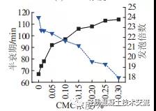 圖 1下 為不同 CMC 含量情況下發(fā)泡倍數(shù)與半衰期的變化情況。 結(jié)果表明:隨著 CMC 含量的增加, 氣泡穩(wěn)定性改善較為顯著, 這是因?yàn)椋茫停?能夠增大溶液黏度, 降低氣泡的排液速度, 使得液膜的黏彈性提高, 減小了氣泡的透氣性, 抑制氣泡變薄, 從而提高氣泡的穩(wěn)定性。但同時(shí)隨著 CMC摻量增大, 發(fā)泡倍數(shù)有所降低。在滿足氣泡穩(wěn)定性的同時(shí), 發(fā)泡倍數(shù)不宜過低。根據(jù)試驗(yàn)結(jié)果可以認(rèn)為, 在 CMC 含量為0.15% 時(shí), 發(fā)泡倍數(shù)約為 21 倍,半衰期為 106 min, 此時(shí), 既可以保持比較高的發(fā)泡倍數(shù), 又能獲得比較好的穩(wěn)泡性能。為便于使用, 將上述復(fù)配型發(fā)泡劑記為 F型發(fā)泡劑。