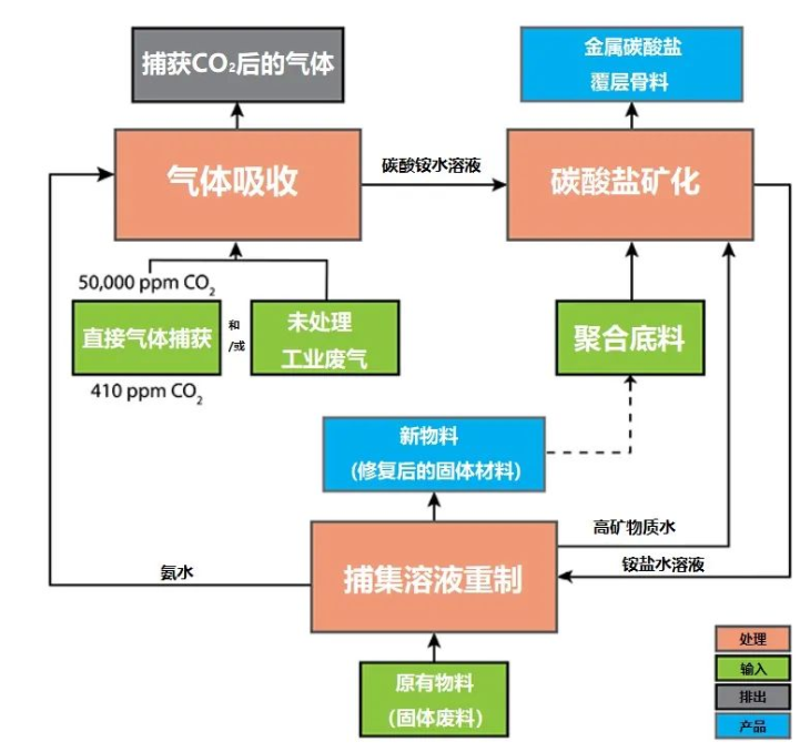 Blue Planet Systems 使用CO?作為原材料制造碳酸鹽,用于替代天然石灰巖,作為混凝土的重要組成部分。與其他公司不同,該技術是將含有CO?的工業廢氣通入水基捕集溶液中,將其中CO?轉化為碳酸鹽,處理過程中無需凈化步驟,高效且廉價。
